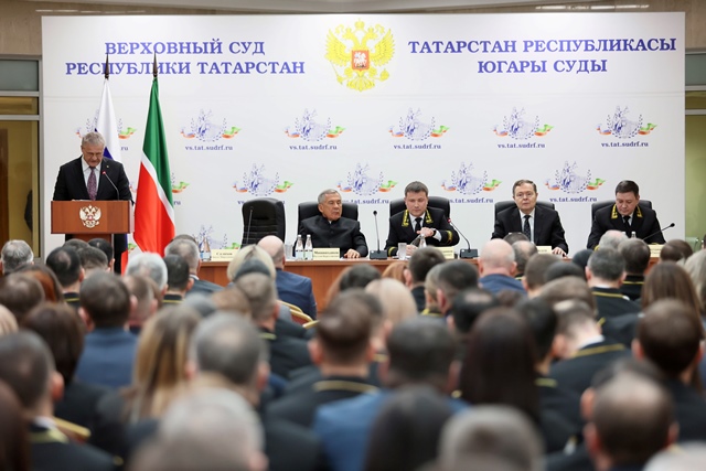 13 февраля в Верховном суде Республики Татарстан состоялась XVII отчетно-выборная конференция судей Республики Татарстан. На конференции присутствовали Раис Республики Татарстан Рустам Минниханов, Главный федеральный инспектор по Республике Татарстан Виктор Демидов, а также руководители государственных и правоохранительных органов республики. Рустам Минниханов отметил технологические успехи региона и подтвердил готовность к активному участию в модернизации судебной системы. Начальник Управления Судебного департамента в Республике Татарстан Зявдат Салихов и Председатель Верховного суда Республики Татарстан Азат Гильмутдинов представили итоги работы за год. Зявдат Салихов в своем докладе раскрыл основные показатели деятельности Управления по каждому направлению, а также перечислил районные (городские) суды с положительной и отрицательной динамикой по конкретным направлениям деятельности, отдельно остановился на вопросах архивного делопроизводства, кадрового обеспечения и безопасности судов. В ходе конференции были заслушаны отчеты о работе Совета судей Республики Татарстан, Квалификационной коллегии судей Республики Татарстан и Экзаменационной комиссии Республики Татарстан по приему квалификационного экзамена на должность судьи. Конференция стала площадкой для награждения победителей конкурсов «Судья года», «Лучший по профессии». В рамках конференции также прошли выборы новых составов и председателей Совета судей Республики Татарстан, Квалификационной коллегии судей Республики Татарстан и Экзаменационной комиссии Республики Татарстан по приему экзамена на должность судьи, сроком на четыре года. В работе конференции приняли участие представители судейского сообщества, делегаты, избранные на общих собраниях судей Верховного Суда Республики Татарстан, Арбитражного суда Республики Татарстан, Казанского гарнизонного военного суда, районных (городских) судов и мировых судей Республики Татарстан. От Кукморского районного суда в конференции приняли участие и.о. председателя Венера Хамидуллина и судья Татьяна Дмитриева. пресс-служба Кукморского районного суда Республики Татарстан |